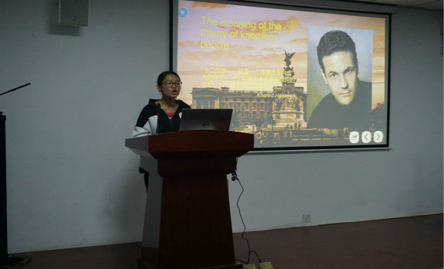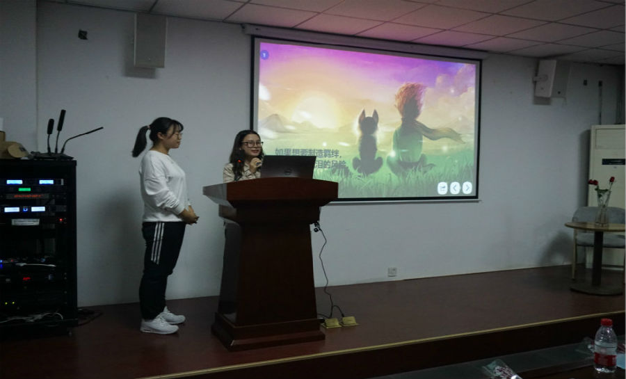分享会正式开始,精彩层出不穷,18级日语系吴嘉明同学分享了刘敬者老师的推荐书目《在日本,岛国88元素》,独具特色的日语讲解,加之动人的图画渲染,更加贴切和直观的还原了日本的真实景象。这里既有村上春树的文学记忆,也有哆啦A梦的童年集体,还有富有日本特色的思想流露,仿佛带着观众们真正游历了一趟日本。同级的西语系邢雨菲同学分享的张素敏老师推荐的书目《楚辞》,邢雨菲同学的声音嘹亮,感情充沛,引人入胜,让我们重温屈原“亦余心之所善兮,虽九死其犹未悔”的荡气回肠,一览中国古代文化的博大精深。另外,还有18级外文三班的侯晓乐同学分享的赵强老师的推荐书目《愿你历尽千帆,归来仍是少年》,讲述了作者曾锴如何从一个叛逆高中生成长为青年媒体人、博士作家的励志故事,启发着学生们“志当存高远,归来仍少年”。18级外文三班邸峥同学分享了任雪梅老师的推荐书目《灿烂千阳》,让我们看到阿富汗这个国家,这个民族的一段历史的缩影,邸峥同学在书中获得启示,以德国总理默克尔,伊朗数学家米尔扎哈尼为例,讲述了女性女权解放以及教育的重要性,见解深刻,引人深思。由18级外文四班张梦瑄同学分享的刘晓华老师的推荐书目《拆掉思维里的墙》,激励着学生们成长成自己想要的样子,成为自己的掌控者。还有由17级商务英语系的江雪,孙莉媛同学分享的李昭老师推荐的书目《小王子》,以中英结合的演讲将小王子的故事娓娓道来,她们声音柔美动听,不仅体现了扎实的英文功底,更展示了她们对小王子的细腻情感,体现了对真善美的讴歌。