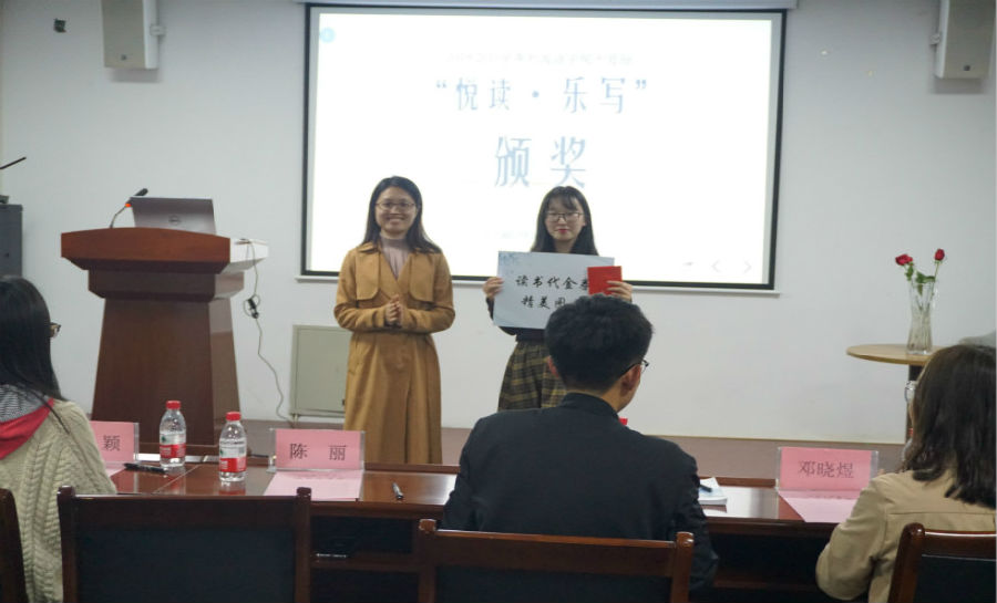 在本次“悦读·乐写”分享会中,吴嘉明同学,侯晓乐同学,邸峥同学,张梦瑄同学,江雪同学以及孙莉媛同学获得了“悦读·乐写”之星荣誉称号,其中吴嘉明同学在展示过程中,所做PPT内容丰富多彩,充分体现了日本的特色元素,语言表达流畅自然,凭借出色的表现获得本次活动的特别奖励免费读书代金券,陈丽老师为其颁发了奖项。