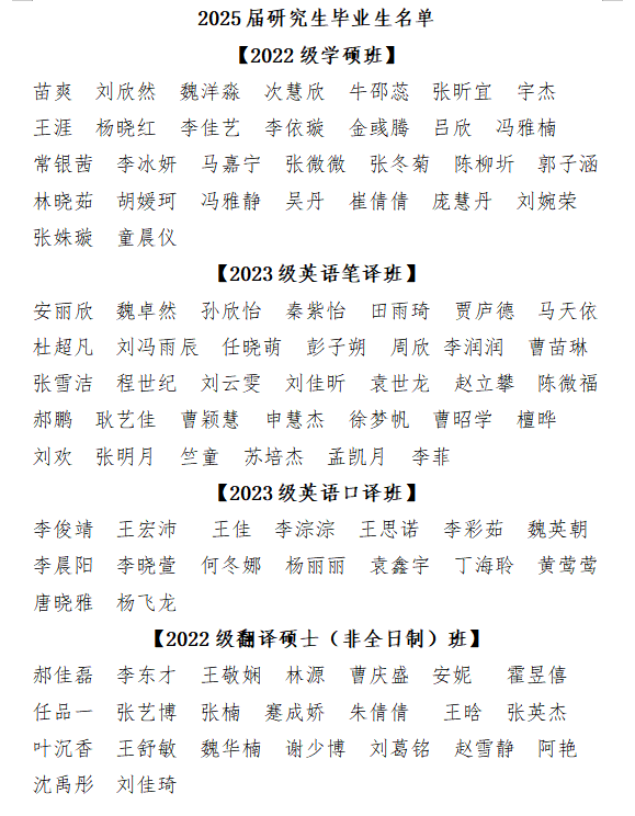 2025届研究生毕业生名单