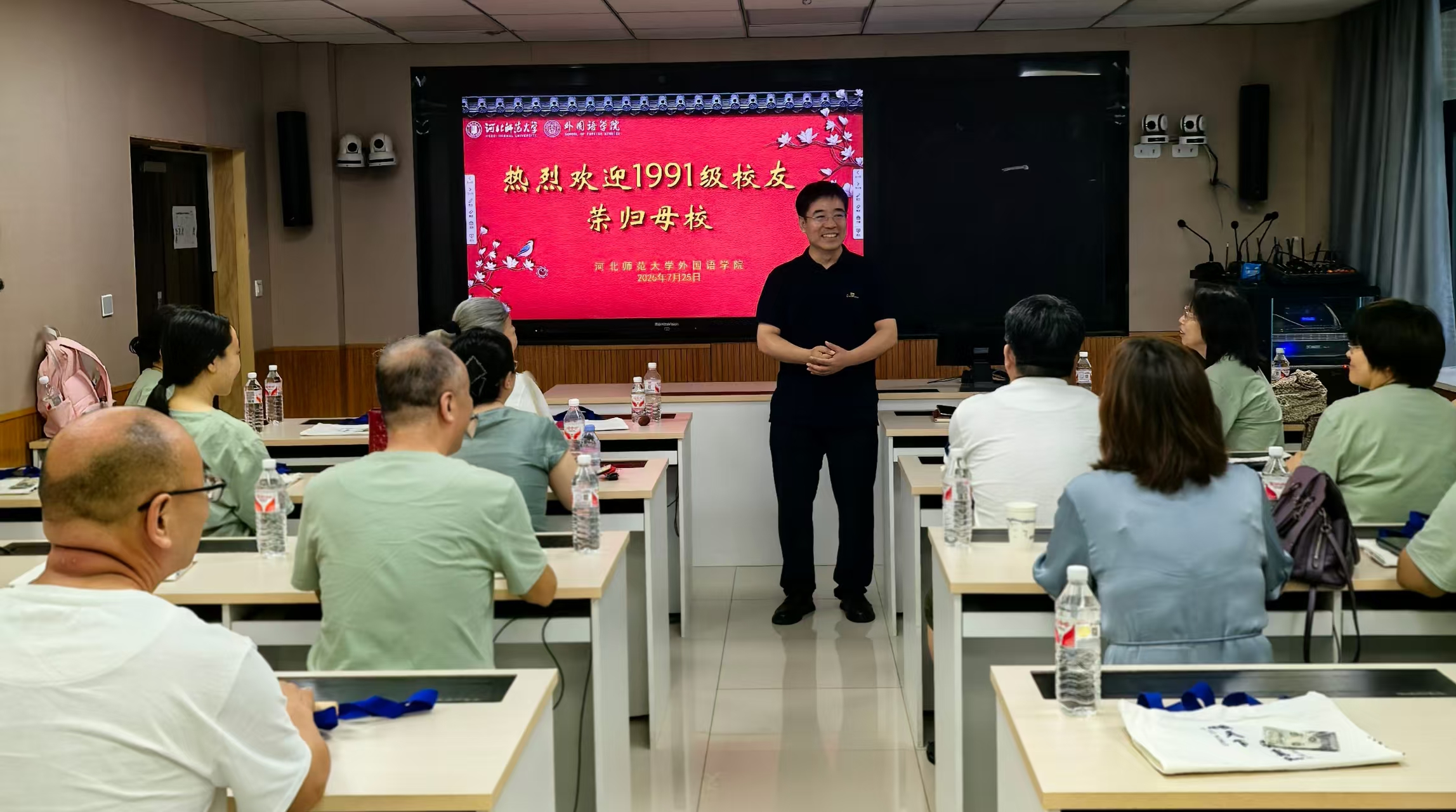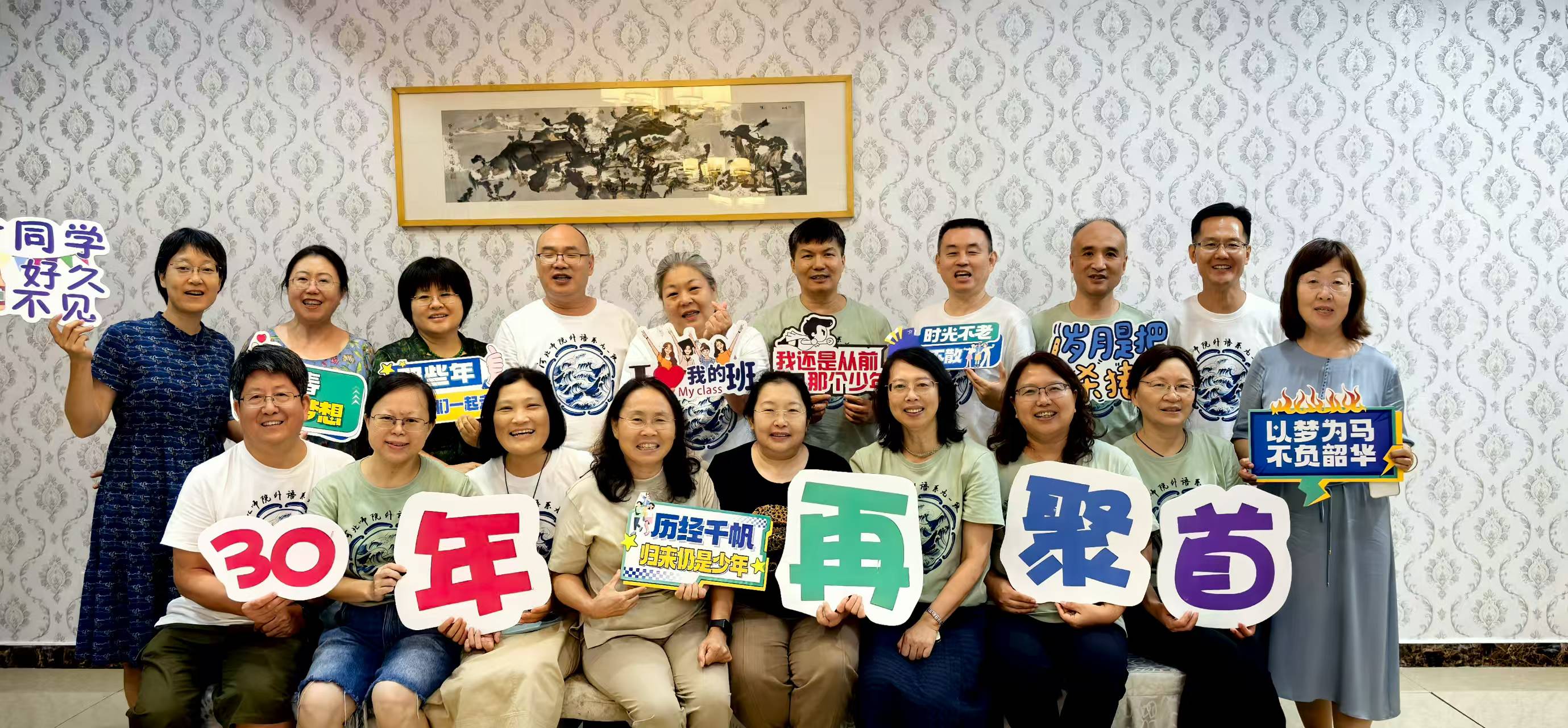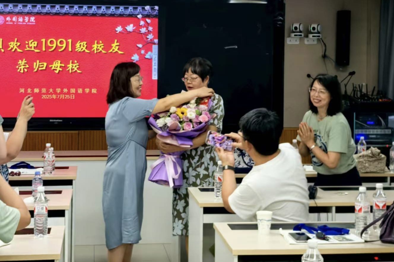 2025年7月25日,美高梅 英语专业1991级(河北师范美高梅 )27名校友返校,在文科B114室参加毕业30周年座谈交流会。美高梅 院长王洪庆、美高梅 党委副书记霍晨静、时任专业教师马丽莉教授出席。